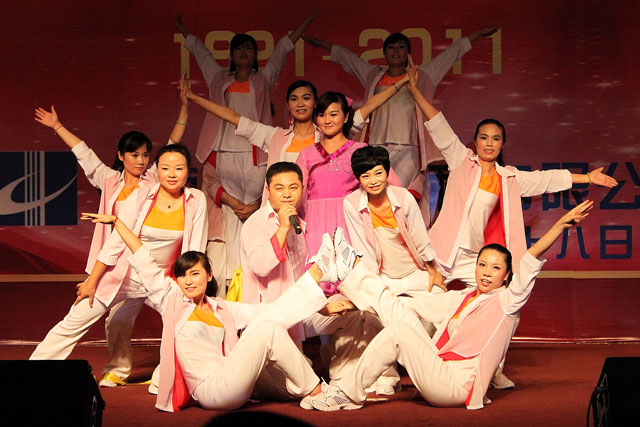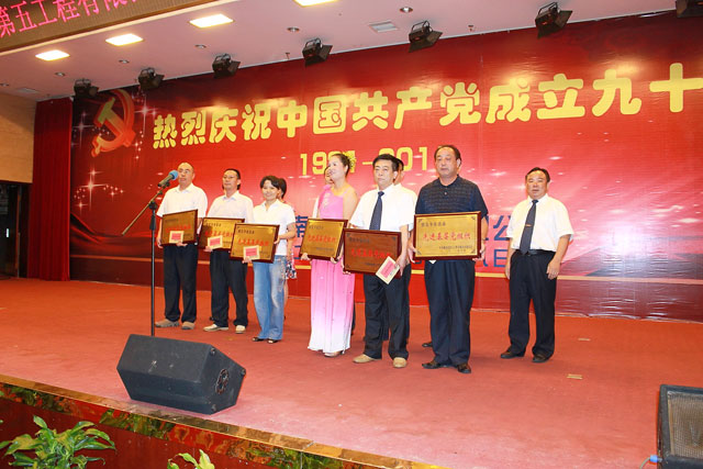 慶典活動第二部分為“慶祝建黨90周年文藝匯演”。按照公司黨委慶祝建黨90周年系列活動安排的要求,公司工會、黨委辦、群工部及所屬各單位黨委、支部、工會,經(jīng)過較長時(shí)間的精心組織排練,共選送了17個(gè)節(jié)目參加慶祝建黨90周年文藝匯演,節(jié)目包含合唱、舞蹈、歌伴舞、音樂小品、獨(dú)唱等多種形式,主題鮮明,內(nèi)容健康,表演精湛,整臺節(jié)目歷時(shí)2個(gè)小時(shí),精彩紛呈,掌聲不息。湖南五建兒女以動人的歌喉、優(yōu)美的舞姿、真摯的情感,表達(dá)著對黨的敬愛之情。經(jīng)過評委打分,直屬項(xiàng)目管理公司表演的《自豪的建設(shè)者》榮獲一等獎(jiǎng);勞動服務(wù)公司、金屬架料公司選送的《映山紅》與職工醫(yī)院選送的《五星紅旗》分獲二等獎(jiǎng);九圓建筑分公司、物業(yè)管理公司選送的《繡紅旗》、公司團(tuán)委選送的《旗幟更鮮艷》、長沙經(jīng)營總公司、長沙華宇公司選送的《龍的傳人》分獲三等獎(jiǎng);另有11個(gè)節(jié)目榮獲優(yōu)勝獎(jiǎng)。公司工會主席、紀(jì)委書記李金玉宣布節(jié)目獲獎(jiǎng)名單后,公司全體領(lǐng)導(dǎo)成員上臺為獲獎(jiǎng)節(jié)目頒獎(jiǎng),并與演員代表合影留念。