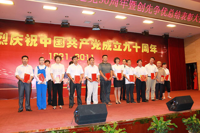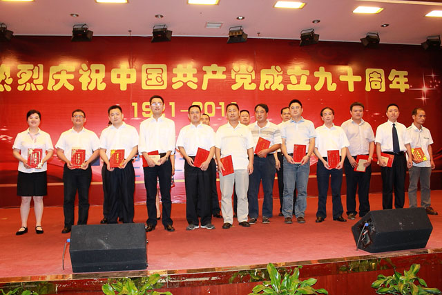 下午3點(diǎn)正,慶典活動準(zhǔn)時(shí)開始。整個(gè)慶典活動分三大部分。第一部分為“慶祝建黨90周年暨創(chuàng)先爭優(yōu)總結(jié)表彰大會”,公司總經(jīng)理葉有泉主持會議。公司黨委書記羅貴生作了慶祝建黨90周年暨創(chuàng)先爭優(yōu)總結(jié)講話。在講話中,羅貴生書記代表公司黨委向全司各級黨組織和全體共產(chǎn)黨員致以節(jié)日的問候,并對大家為公司改革發(fā)展做出的重要貢獻(xiàn)表示感謝。他簡要回顧了黨90年來的光榮歷程,總結(jié)了公司創(chuàng)先爭優(yōu)活動所取得的成績,提出了當(dāng)前和今后一個(gè)時(shí)期黨建工作要重點(diǎn)做好三個(gè)方面的工作要求。集團(tuán)總公司聯(lián)系領(lǐng)導(dǎo)李湘波做了重要講話,對公司黨委開展創(chuàng)先爭優(yōu)活動工作情況進(jìn)行了點(diǎn)評。他對公司黨委開展創(chuàng)先爭優(yōu)活動工作給予了充分肯定,認(rèn)為我公司規(guī)定動作到位且有創(chuàng)新,實(shí)際成效明顯。并對今后的工作提出了要求與希望。公司董事長熊用機(jī)宣讀了公司黨委《關(guān)于表彰先進(jìn)基層黨組織、優(yōu)秀共產(chǎn)黨員、優(yōu)秀黨務(wù)工作者的決定》,有6個(gè)先進(jìn)基層黨組織、30名優(yōu)秀共產(chǎn)黨員、6名優(yōu)秀黨務(wù)工作者,受到了公司黨委的表彰。集團(tuán)總公司副總經(jīng)理李湘波、黨委辦主任鄧建英、駐司監(jiān)事會主席文勇、公司董事長熊用機(jī)、黨委書記羅貴生、總經(jīng)理葉有泉為先進(jìn)頒獎(jiǎng)。