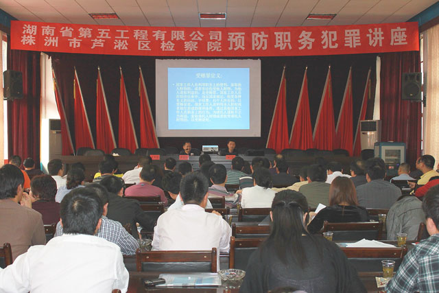 為認(rèn)真貫徹中紀(jì)委十七屆六次全會精神和《國有企業(yè)領(lǐng)導(dǎo)人員廉潔從業(yè)若干規(guī)定》,按照省國資委、總公司紀(jì)委相關(guān)要求,進(jìn)一步強(qiáng)化公司各級黨員領(lǐng)導(dǎo)干部廉潔自律意識,提高拒腐防變能力,加強(qiáng)黨風(fēng)廉政建設(shè),營造良好的風(fēng)氣和發(fā)展環(huán)境,為企業(yè)“十二五”發(fā)展規(guī)劃開好局、起好步,4月22日,公司舉辦了一堂生動的預(yù)防職務(wù)犯罪警示教育專題講座,邀請了株洲市蘆淞區(qū)檢察院預(yù)防科科長、反貪局副局長陽炅進(jìn)行授課。講座由公司黨委書記羅貴生主持,公司領(lǐng)導(dǎo)班子成員、本部正副部長(主任)、監(jiān)事、省內(nèi)二級單位領(lǐng)導(dǎo)班子成員、部分省外分公司領(lǐng)導(dǎo)班子成員150余人接受了學(xué)習(xí)教育。