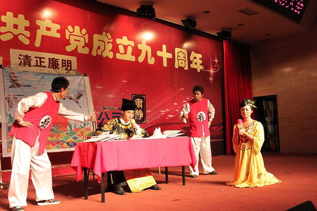 日前,溫州分公司黨委創(chuàng)新廉政教育方式,組織員工排練音樂小品《包菜審案記》,在公司和分公司演出,向全司廣大黨員干部倡導(dǎo)廉潔從業(yè),反響良好。小品采用荒誕手法,結(jié)合現(xiàn)代生活元素,依據(jù)包青天審案的故事改編,講述嫌犯白菜和花菜危害鄉(xiāng)親,作惡多端但在公堂之上面對質(zhì)詢,卻百般抵賴,萬般狡辯,企圖用美色和金錢賄賂縣官,以達(dá)到逃過法律制裁的目的。縣官在審案的過程中,為搜集罪證,欲擒故縱,將計(jì)就計(jì),將兩人的丑惡行徑曝光于眾,最終將二人繩之以法。小品告誡我們黨員干部面對誘惑要堅(jiān)定立場,明辨是非,堅(jiān)決與丑惡現(xiàn)象作斗爭,做到廉潔自律,以身作則。