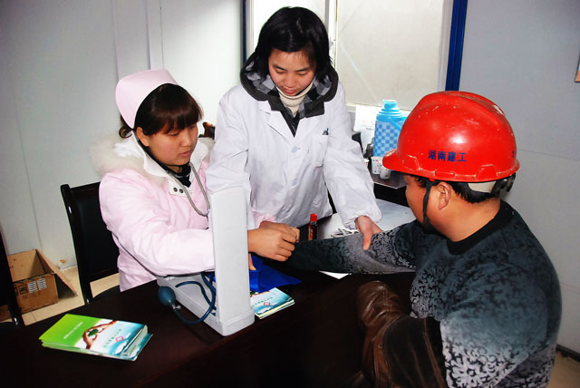 青年志愿?jìng)儊?lái)到農(nóng)民工中間,將一些日常所需的感冒、消炎的藥品贈(zèng)送給項(xiàng)目部,為農(nóng)民工發(fā)放計(jì)生用品和《防止艾滋病手冊(cè)》,提供理發(fā)服務(wù),并主動(dòng)幫助他們打掃生活區(qū)、食堂衛(wèi)生。來(lái)自公司職工醫(yī)院團(tuán)支部的青年醫(yī)務(wù)專(zhuān)家和護(hù)士們利用自己專(zhuān)業(yè)所長(zhǎng),現(xiàn)場(chǎng)為農(nóng)民工進(jìn)行健康體檢,耐心細(xì)致地接受農(nóng)民工健康咨詢(xún),他們熱情地為農(nóng)民工朋友答疑解惑,提供醫(yī)療保健服務(wù),活動(dòng)現(xiàn)場(chǎng)尤為熱鬧。