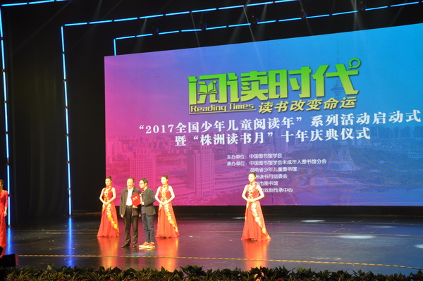 4月12日上午,株洲市“2017全國(guó)少年兒童閱讀年”系列活動(dòng)啟動(dòng)儀式暨“株洲讀書(shū)月”十年慶典在株洲神龍大劇院隆重舉行。省文化廳黨組書(shū)記、廳長(zhǎng)禹新榮,市委副書(shū)記、市長(zhǎng)陽(yáng)衛(wèi)國(guó)到場(chǎng)致辭。