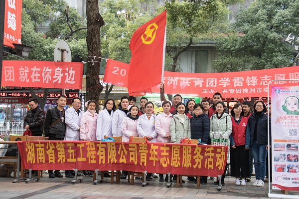 3月5日,公司青年志愿服務(wù)隊(duì)在中心廣場王府井前坪開展“學(xué)雷鋒”志愿服務(wù)活動(dòng),來自公司所屬分公司、株洲市康復(fù)醫(yī)院等30余名青年志愿者踴躍奉獻(xiàn)愛心。