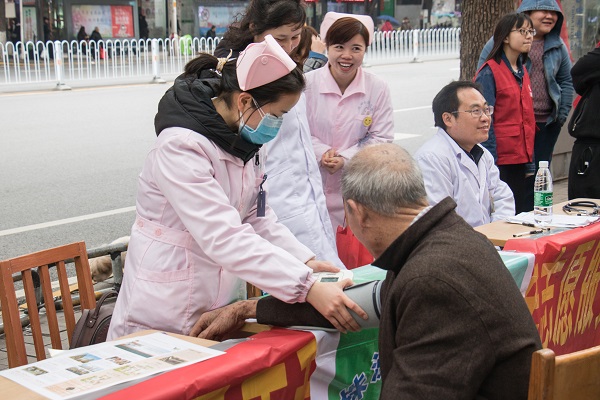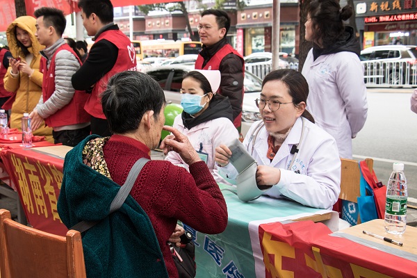 期間,青年志愿者熱心地為市民服務(wù),測量血壓、血糖,免費(fèi)向醫(yī)生咨詢病癥,前100位參與義診者,免費(fèi)領(lǐng)取日常醫(yī)藥用品等。60歲的黎阿姨,在志愿服務(wù)臺(tái)前,株洲市康復(fù)醫(yī)院的青年志愿者現(xiàn)場為她測量血壓!鞍⒁,您的血壓有些偏高,飲食上要多注意,盡量吃的清淡一些,多走動(dòng),這樣血壓才會(huì)正常!崩璋⒁陶J(rèn)真地聆聽志愿者的叮囑,“謝謝你們的提醒,我會(huì)注意的!敝驹刚邆兊姆⻊(wù)贏得黎阿姨的連連稱贊。