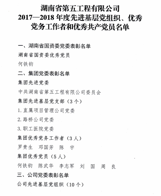 會(huì)議全面回顧了公司黨委過(guò)去一年工作,成績(jī)顯著,備受鼓舞。羅貴生書記指出,一是夯實(shí)黨建基礎(chǔ),突出黨建引領(lǐng)。嚴(yán)格規(guī)范了黨委決策程序,發(fā)揮黨委全面領(lǐng)導(dǎo)作用。健全夯實(shí)黨的基層組織,注重黨員日常教育管理。規(guī)范基層黨支部建設(shè),確保每個(gè)支部都成為戰(zhàn)斗堡壘。同時(shí)開展結(jié)對(duì)幫扶,讓困難黨員職工感受組織溫暖。二是扎實(shí)推進(jìn)“兩學(xué)一做”常態(tài)化、制度化建設(shè)。制定了公司“兩學(xué)一做”學(xué)習(xí)教育常態(tài)化制度化實(shí)施方案,抓住重點(diǎn),層層細(xì)化。注重學(xué)習(xí)型組織建設(shè),提升理論素養(yǎng)。強(qiáng)化深入調(diào)查研究,服務(wù)基層黨員。三是優(yōu)化隊(duì)伍建設(shè),打造一流團(tuán)隊(duì)。以“五建干部學(xué)!睘槠脚_(tái),開展了多層次、多內(nèi)容的教育培訓(xùn)。四是創(chuàng)新宣傳載體,提升企業(yè)文化。著力辦好《湖南五建》報(bào)紙、網(wǎng)站以及微信公眾號(hào),重新編印《企業(yè)文化手冊(cè)》,開設(shè)易地扶貧搬遷項(xiàng)目建設(shè)專題宣傳。五是發(fā)揮群團(tuán)優(yōu)勢(shì),助推企業(yè)發(fā)展。全面構(gòu)建黨建帶工建、黨建帶團(tuán)建的組織網(wǎng)絡(luò)和工作體系。六是切實(shí)履行黨委黨風(fēng)廉政建設(shè)主體責(zé)任。著重日常教育,營(yíng)造不想腐不敢腐的良好環(huán)境。做到學(xué)字當(dāng)先,時(shí)刻保持警鐘長(zhǎng)鳴,堅(jiān)持正面引導(dǎo)和警示教育相結(jié)合。