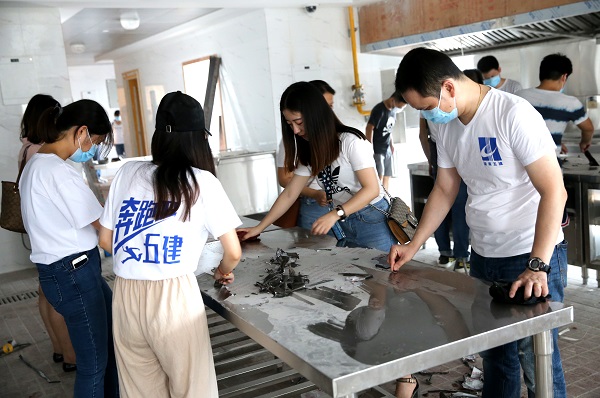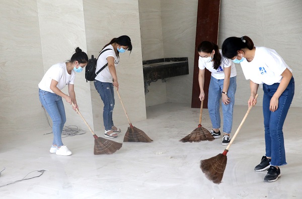 本次活動著重對新桂國際辦公樓1至4樓部分環(huán)境進行集中“美化”;顒蝇F(xiàn)場氣氛熱烈,志愿者共分為3個服務小組,團員青年的身影活躍在新辦公樓的各個角落中,有拿鐵鍬、掃把、抹布、鏟子、垃圾袋等勞動工具的,有撿拾垃圾、鏟除石膏、掃清積水、清理膠布的,團員青年本著不怕臟、不怕累,爭著干、搶著干的服務精神,清掃4層樓、裝運垃圾10余袋,充分發(fā)揮了團員青年志愿者生力軍作用;顒又,團委副書記陳婷率先以身示范,帶頭掃地、擦墻、清除垃圾,熱情高漲,干勁十足。經過幾個小時的清掃清洗,新桂國際新辦公環(huán)境被打掃干凈、整潔,環(huán)境面貌煥然一新。