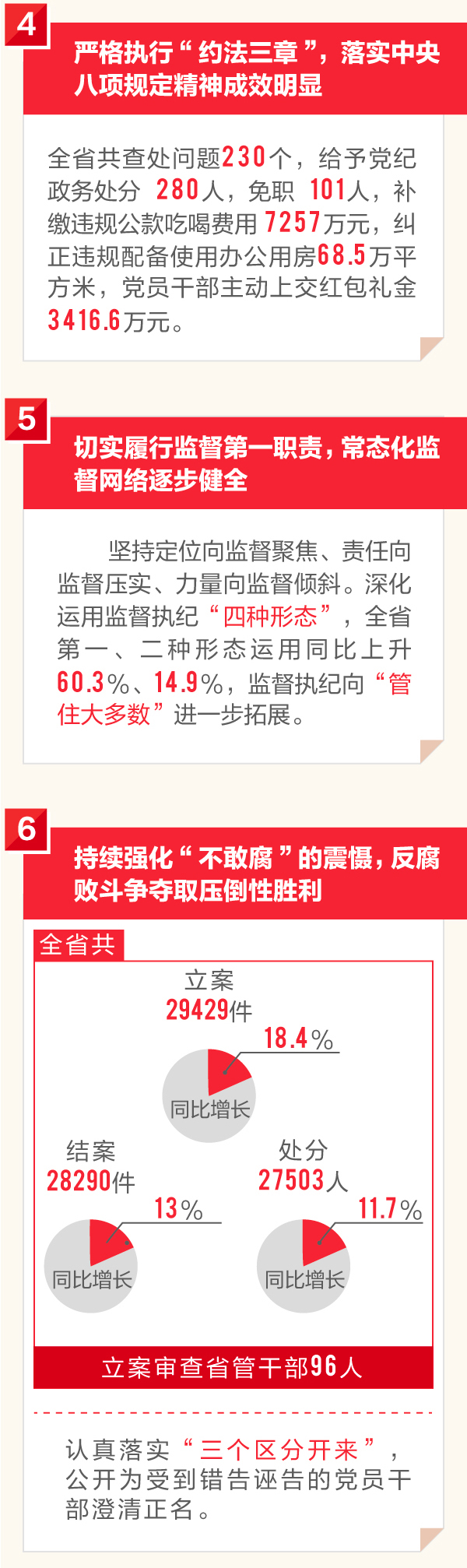 【編者按】中國共產(chǎn)黨湖南省第十一屆紀(jì)律檢查委員會第四次全體會議,于2019年1月19日在長沙舉行。全會深入學(xué)習(xí)貫徹習(xí)近平新時代中國特色社會主義思想和黨的十九大精神,按照十九屆中央紀(jì)委三次全會的要求,總結(jié)2018年紀(jì)檢監(jiān)察工作,部署2019年工作任務(wù),審議通過傅奎同志代表省紀(jì)委常委會所作的《堅持穩(wěn)中求進(jìn),深化標(biāo)本兼治,推動新時代紀(jì)檢監(jiān)察工作高質(zhì)量發(fā)展》工作報告。本期推出《一圖讀懂湖南省十一屆紀(jì)委四次全會工作報告》,請全體黨員干部認(rèn)真學(xué)習(xí)。
