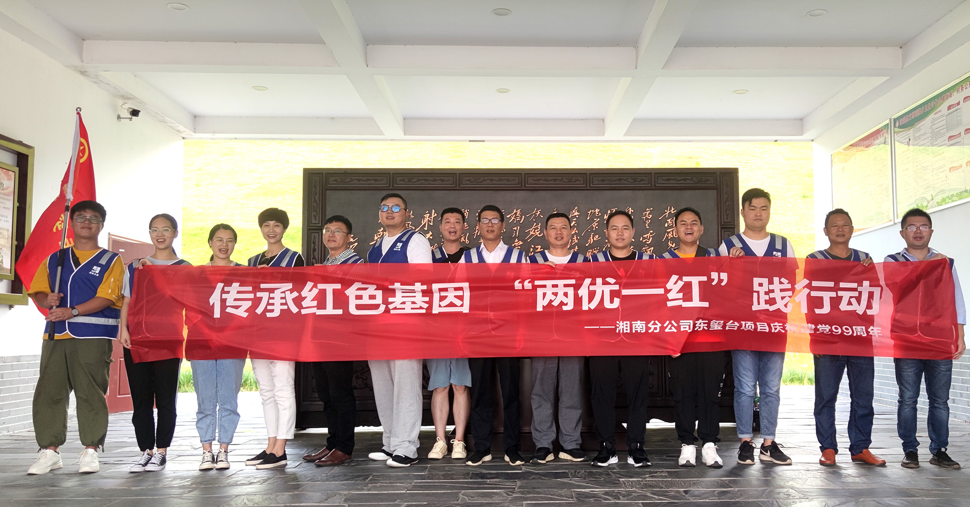 7月12日,為慶祝中國(guó)共產(chǎn)黨建黨99周年華誕,結(jié)合“兩優(yōu)一紅”項(xiàng)目黨建示范點(diǎn)創(chuàng)建活動(dòng),湘南分公司東璽臺(tái)項(xiàng)目開展以“紅色歷史教育”為主題,重溫黨的光輝歷史黨性實(shí)踐活動(dòng)。