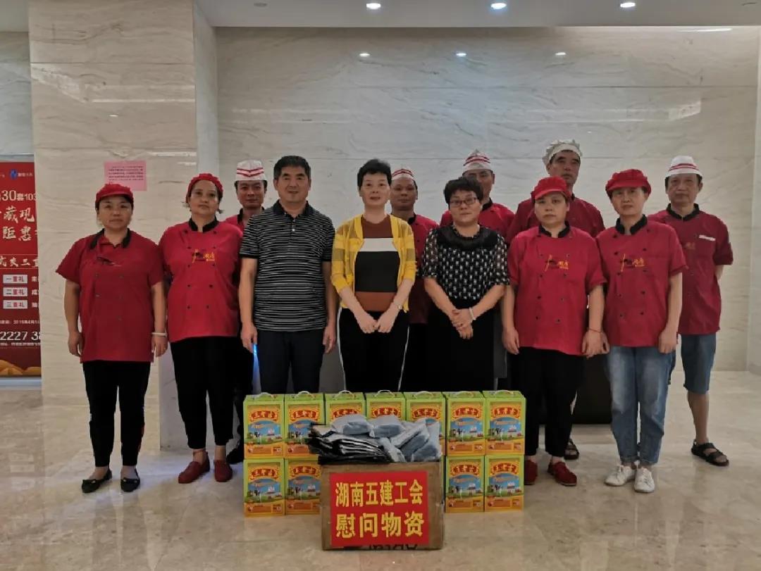隨后,李金玉主席、曾智勇副主席還一同到本部食堂慰問餐廚工作人員,感謝他們?yōu)閱T工提供可口飯菜的辛勤付出,督導(dǎo)食堂廚師要進(jìn)一步提升廚藝水平,不定期研發(fā)新的菜品,豐富菜品花樣,積極打造五建食堂餐飯及文化特色。