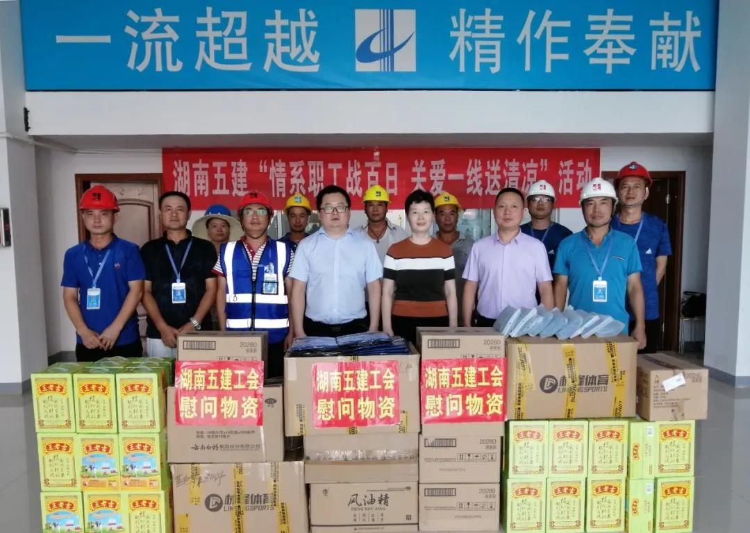 8月6日-7日,由公司工會主席李金玉帶隊(duì)分別到路橋公司城發(fā)•翰林府項(xiàng)目、直屬項(xiàng)目管理公司鐵道職業(yè)技術(shù)學(xué)院新校區(qū)建設(shè)一期一標(biāo)項(xiàng)目和公司本部食堂開展“情系職工戰(zhàn)百日關(guān)愛一線送清涼”活動,并為一線員工送上毛巾、涼茶、藿香正氣水、文化衫等慰問物資。公司工會副主席曾智勇、工會辦主任顏淵、工會辦副主任周玉蓮,路橋公司支部書記楊彪,直屬項(xiàng)目管理公司黨總支書記楊建斌等參加相關(guān)活動。