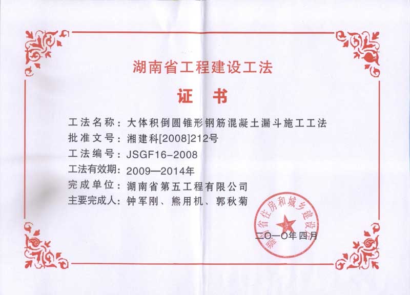 湖南省第五工程有限公司創(chuàng)建于1953年,前身為中南工程管理局第五工程公司,1958年由湖南省基本建設(shè)局命名為湖南省第五工程公司,2008年經(jīng)湖南省國資委批準,更名為湖南省第五工程有限公司,系國家建筑工程