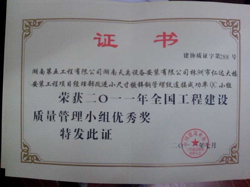 仁達(dá)大樓安裝工程項(xiàng)目經(jīng)理部改進(jìn)小尺寸鍍鋅鋼管螺紋連接成功率QC小組