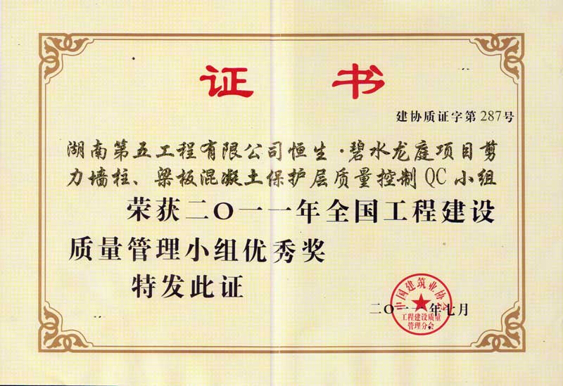 恒生.碧水龍庭項目剪力墻柱、梁板混凝土保護層質量控制QC小組