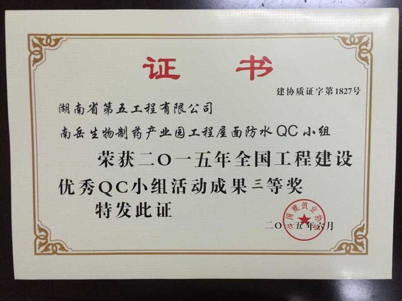 南岳生物制藥產(chǎn)業(yè)園工程屋面防水QC小組