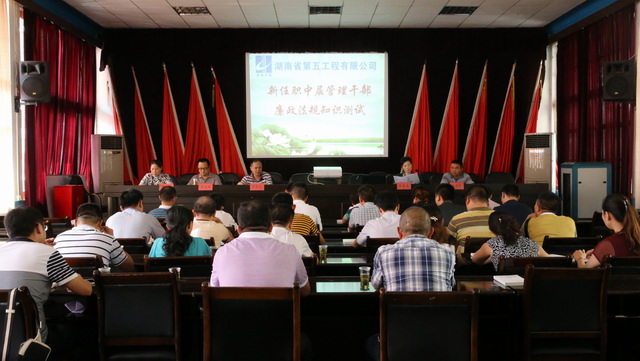 測試內(nèi)容為涉及有關黨風廉政建設和反腐敗方面的法紀條規(guī)、黨內(nèi)監(jiān)督條例等內(nèi)容,公司紀委根據(jù)測試內(nèi)容編寫了《領導干部廉潔從政資料匯編目錄》和《湖南省第五工程有限公司領導干部廉政法規(guī)知識測試題庫》,試題從題庫中隨機抽取,考試成績將作為領導干部本人廉潔從政履職考核內(nèi)容。