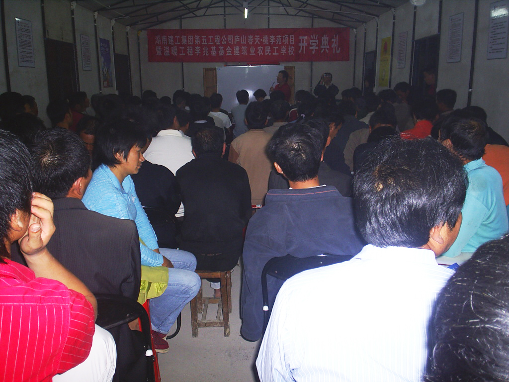 廬山春天桃李苑項目部按照公司要求,對創(chuàng)建農(nóng)民工學校給予了高度重視,從確定校址、建立組織機構到掛牌和教室布置,一切按要求進行。并在農(nóng)民工中進行了深入宣傳發(fā)動,發(fā)放了相關學習資料,使全體農(nóng)民工真正認識到了參加學習的重要性和必要性。當晚教室里座無虛席,近200名農(nóng)民工對張云霞處長的講課聽得全神貫注,并不時報以熱烈的掌聲。