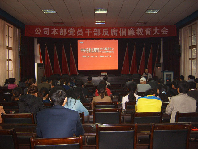 根據(jù)集團(tuán)總公司紀(jì)委和公司紀(jì)委的要求,為深入貫徹黨的反腐倡廉戰(zhàn)略方針,進(jìn)一步推進(jìn)廉政文化建設(shè)“六進(jìn)”工作,促使干部職工進(jìn)一步樹立和弘揚(yáng)良好作風(fēng),預(yù)防職務(wù)犯罪,提高干部職工的拒腐防變能力,8月中旬以來,公司所屬各單位黨委、支部相繼組織觀看了《拒腐防變每月一課》教育片。10月29日下午,公司本部黨委召開黨員干部反腐倡廉教育大會(huì),組織全體干部員工集中觀看了《拒腐防變每月一課》教育片。公司董事長熊用機(jī)、黨委書記羅貴生及在家的公司領(lǐng)導(dǎo)成員與全體黨員干部一同觀看。