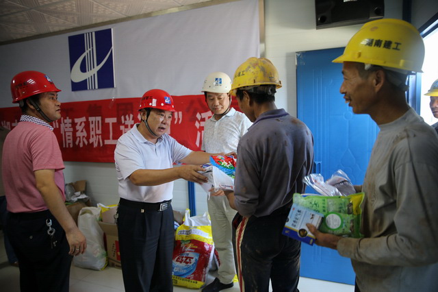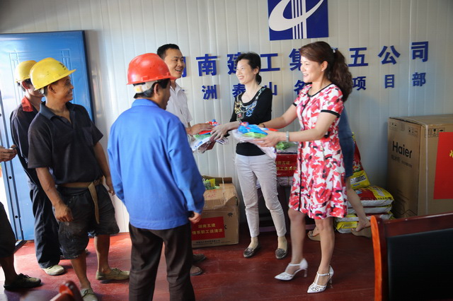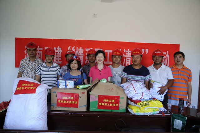 “情系職工送清涼”是公司多年來(lái)堅(jiān)持開(kāi)展的一項(xiàng)服務(wù)職工、關(guān)愛(ài)職工的活動(dòng)。今年在“情系職工送清涼”活動(dòng)中,公司領(lǐng)導(dǎo)親自慰問(wèn)了省內(nèi)項(xiàng)目15個(gè)、本部和物業(yè)公司工人以及退休支部,籌集資金10多萬(wàn)元,購(gòu)置了文化衫、涼茶、藿香正氣水、洗衣粉等物資2000余份,并積極聯(lián)系株洲市總工會(huì)申請(qǐng)防暑物資冰柜6臺(tái)、空調(diào)4臺(tái),送往各施工現(xiàn)場(chǎng)。