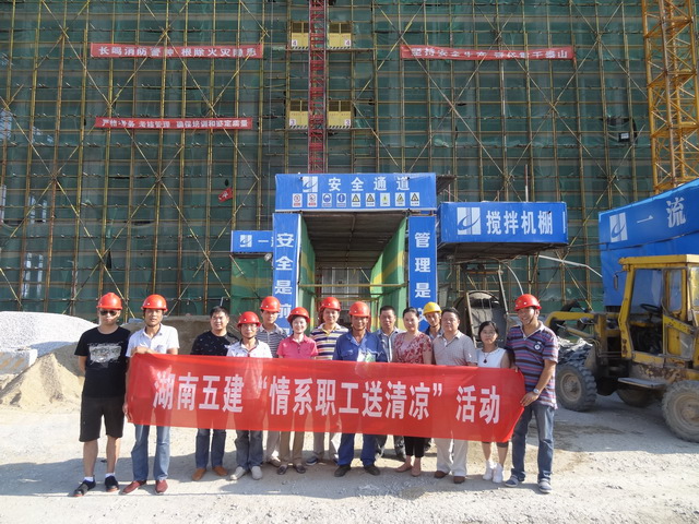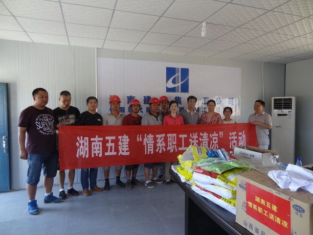 2015年8月6日,公司紀(jì)委書記、工會(huì)主席李金玉率領(lǐng)紀(jì)委辦、工會(huì)辦的負(fù)責(zé)人深入岳陽(yáng)分公司工地送清涼。李主席一行一進(jìn)入岳陽(yáng),顧不上休息,冒著炎炎酷暑便直奔岳陽(yáng)現(xiàn)代裝備制造園一期工程項(xiàng)目部進(jìn)行慰問。到達(dá)工地,施工班組代表激動(dòng)地接受了李主席一行送來的文化衫、洗衣粉、涼茶等等,從施工一線的工人到項(xiàng)目負(fù)責(zé)人,紛紛表示他們收到了一份最有意義、最貼心、最清涼、也是最溫暖的慰問品。