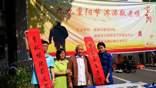 本次活動(dòng)得到了株洲大同社工、楊古老社區(qū)以及鐵道職業(yè)技術(shù)學(xué)院義工團(tuán)隊(duì)的鼎力支持。他們?yōu)槔先藗儽硌萘司实墓?jié)目,醫(yī)院為現(xiàn)場(chǎng)所有的老人們送上了愛心禮品,雖然老人們不能和親人們登高,賞菊,但一樣的開心快樂,因?yàn)橛性S多愛心人士和醫(yī)院黨群組織給予老人們關(guān)愛。