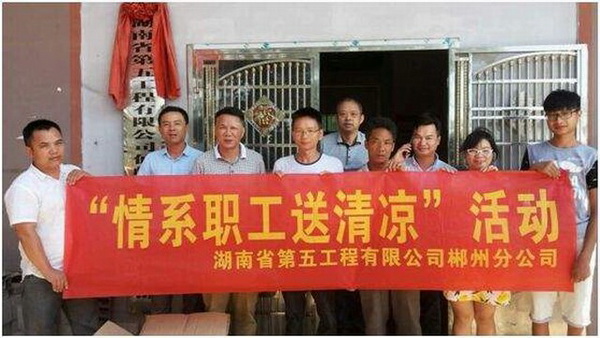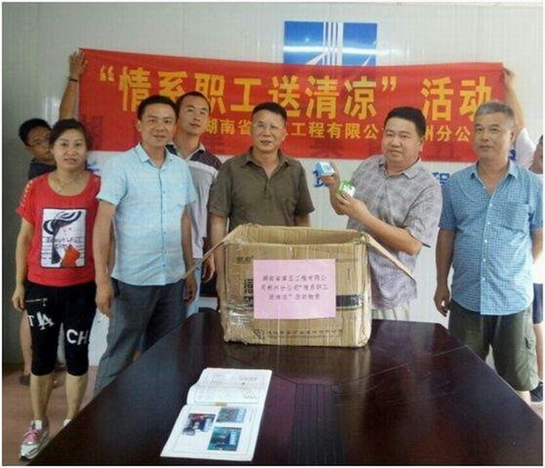 炎炎夏日,驕陽似火,正值建筑施工生產(chǎn)的旺季,工地上的工人師傅們頂住高溫酷暑辛勤地工作。為關愛一線員工,保障職工的健康安全,郴州分公司工會按照公司2016年“送清涼”活動的文件精神,開展了“送清涼、送健康、送安全”等慰問活動。