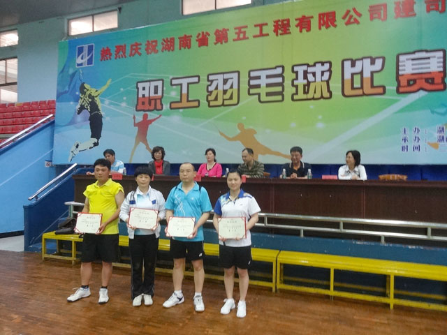 經過一天的緊張比賽,運動員發(fā)揚了艱苦拼搏的精神,取得了好成績。公司本部榮獲團體第一名,電力建設分公司榮獲團體第二名,湖南天禹公司榮獲團體第三名;藝光裝飾公司、職工醫(yī)院、直屬公司、路橋公司、株洲天鶴公司、長沙經營總公司分別榮獲組織獎;勞動服務公司的鄧紹全、電力建設分公司的夏文樂、公司本部的盛軻分別榮獲男子中年組一、二、三名,機施處的周丹、公司本部的魯濤、顏淵分別榮獲男子青年組一、二、三名,公司本部的周文利、丁莉、天禹公司的戴云華分別榮獲女子中年組一、二、三名,電力建設分公司的張飛燕、藝光裝飾公司的聶燦、公司本部的陳健榮獲女子青年組一、二、三名。公司工會將從中推薦14名優(yōu)秀選手參加集團羽毛球比賽。