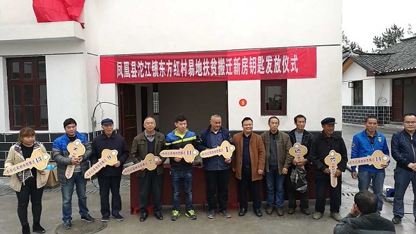 10月18日上午,在黨的十九大勝利召開(kāi)喜慶時(shí)刻,由公司承建的鳳凰縣易地扶貧搬遷第一批工程項(xiàng)目(第四標(biāo)段)沱江鎮(zhèn)東方紅村安置點(diǎn)舉行簡(jiǎn)譜而熱烈的“交鑰匙 搬新房”入住儀式,鳳凰縣易地扶貧建設(shè)公司、沱江鎮(zhèn)、扶貧對(duì)象、監(jiān)理及項(xiàng)目部代表60余人參加。