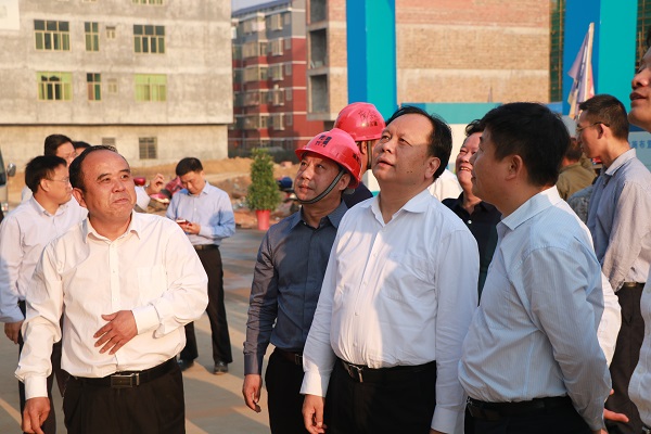 “要以十九大精神為指引,持續(xù)推進易扶項目建設(shè)工作,確保完成1228交房目標任務(wù),助力祁東縣今年年底脫貧‘摘帽’!11月2日,衡陽市市委書記、市人大常委會主任周農(nóng)、副市長楊龍金、市政協(xié)副主席汪維一行蒞臨公司承建的祁東縣易地扶貧搬遷項目調(diào)研指導(dǎo)扶貧攻堅推進工作時如是說。公司副總經(jīng)理董范君陪同視察。