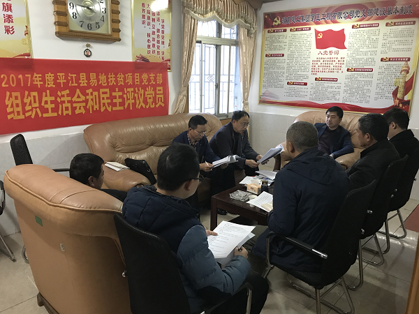 3月19日,平江縣易地扶貧搬遷項目黨支部召開組織生活會和民主評議黨員大會,長沙經(jīng)營總公司黨委書記鐘海軍及支部全體黨員參會。