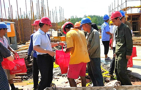 “來(lái)!同志們,大家辛苦了,擦擦汗,先喝瓶水休息下再干活……”資興市市長(zhǎng)羅成輝來(lái)到資興市易地扶貧搬遷項(xiàng)目施工現(xiàn)場(chǎng),他把飲品遞給正在冒著酷暑作業(yè)的員工們,招呼他們先歇息,為他們送上防暑物資,緩解他們勞作的酷熱疲憊,享受一絲清涼。在工作現(xiàn)場(chǎng),熱得汗流浹背的一線(xiàn)員工們,喝著解暑飲品,恰似夏日里的涼風(fēng),沁人心脾,工作起來(lái)更是干勁十足!
