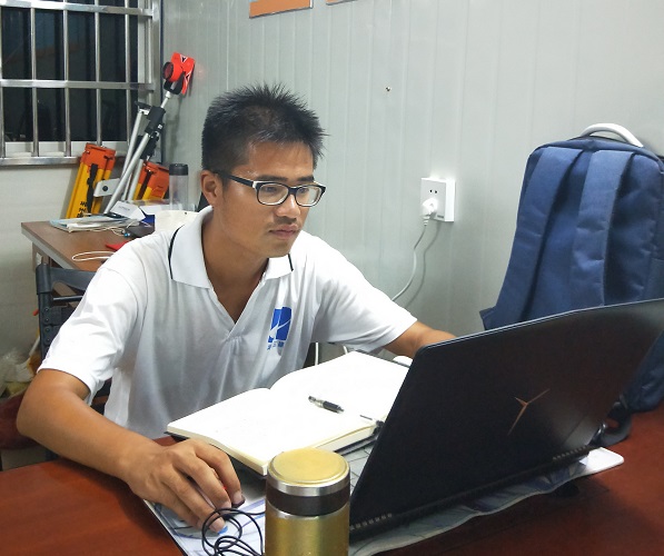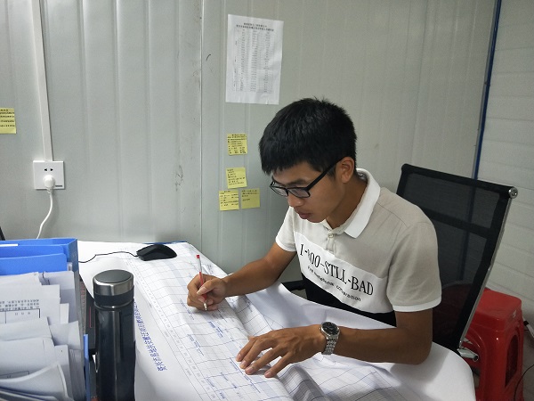 瞿湘丞,2018年入司新進(jìn)大學(xué)生,7月初入湘南分公司便主動(dòng)請(qǐng)纓赴資興扶貧項(xiàng)目實(shí)習(xí),從事項(xiàng)目預(yù)算員崗位。他勤學(xué)好問(wèn),為熟悉施工工藝流程,加強(qiáng)業(yè)務(wù)能力,現(xiàn)場(chǎng)總是能看到他活躍的身影。他還是項(xiàng)目上不可多得的文藝男青年,閑暇之余,他抱著吉他,五指撥動(dòng)琴弦,跳動(dòng)的音符把我們帶進(jìn)一場(chǎng)愉悅的夢(mèng)境,一首首歡快的曲子拉近了同事間的距離,頓時(shí)忘卻了白天工作的辛勞。