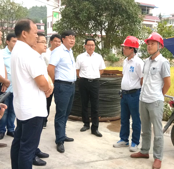 9月22日,衡陽(yáng)市市委常委、常務(wù)副市長(zhǎng)曾艷陽(yáng)深入我司衡陽(yáng)縣易地扶貧搬遷項(xiàng)目建設(shè)現(xiàn)場(chǎng),督查建設(shè)進(jìn)度,現(xiàn)場(chǎng)協(xié)調(diào)解決問(wèn)題,他要求相關(guān)部門(mén)和施工單位通力合作,明確時(shí)間節(jié)點(diǎn),推進(jìn)施工進(jìn)度,確保如期完工。衡陽(yáng)縣縣長(zhǎng)孫鵬偉、副縣長(zhǎng)王蘇龍,公司湘南分公司副經(jīng)理劉永、項(xiàng)目經(jīng)理何鐵鈞等陪同考察。