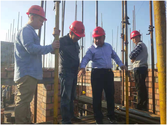 27日上午,葉董事長一行首站到達任務(wù)較重的臨武縣易地扶貧項目金江鎮(zhèn)安置點,看到現(xiàn)場施工人員鋪滿作業(yè)層,一派熱火朝天的景象,對項目采取措施搶進度非常滿意。在查看現(xiàn)場、聽取匯報后,葉董事長指示,作為國有施工企業(yè),我們一定要有政治意識、擔(dān)當(dāng)意識。要堅決把扶貧項目建設(shè)這個政治任務(wù)無條件地完成好,金江鎮(zhèn)安置點要按12月12日封頂、1月25日交鑰匙的目標(biāo)倒排施工計劃,打破常規(guī)做法,采取各種措施辦法保證四天一層樓,確保進度和質(zhì)量安全。