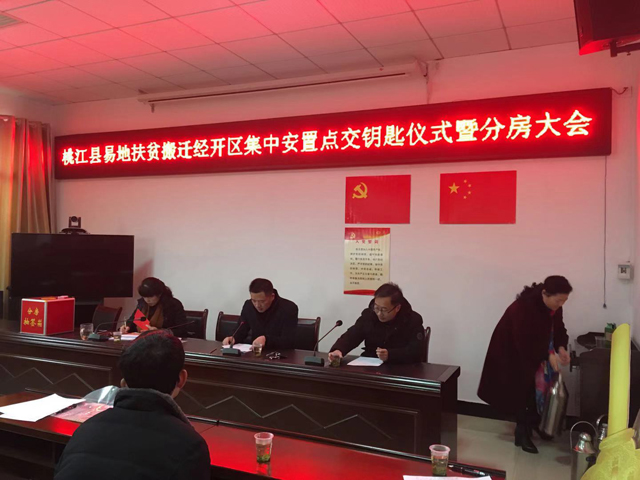 12月29日上午,桃江縣易地扶貧搬遷經(jīng)開(kāi)區(qū)集中安置點(diǎn)交鑰匙儀式暨分房大會(huì)在桃江縣發(fā)改局舉行。儀式的舉行標(biāo)志著公司在益陽(yáng)市桃江縣的易地扶貧搬遷建設(shè)任務(wù)取得勝利。2018年公司益陽(yáng)市桃江縣易地扶貧搬遷集中安置工程共有武潭、松木塘、經(jīng)濟(jì)開(kāi)發(fā)區(qū)、灰山港、馬跡塘五個(gè)集中安置點(diǎn),工程造價(jià)6000多萬(wàn)元,由湘北分公司負(fù)責(zé)施工建設(shè)。項(xiàng)目自2018年7月開(kāi)工,歷經(jīng)6月的艱苦作戰(zhàn),全部在年前陸續(xù)通過(guò)五方責(zé)任主體預(yù)驗(yàn)收,完成安置302戶,總?cè)藬?shù)1026人。