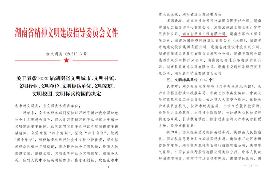 3月25日下午,湖南省精神文明表彰大會在長沙召開,會議對2020屆湖南省文明城市、文明村鎮(zhèn)、文明單位等先進典型進行了集中表彰。會上,公司被授予2020屆“湖南省文明單位”榮譽稱號,這是繼獲評2018屆省屬監(jiān)管企業(yè)文明單位后,精神文明創(chuàng)建再獲殊榮。