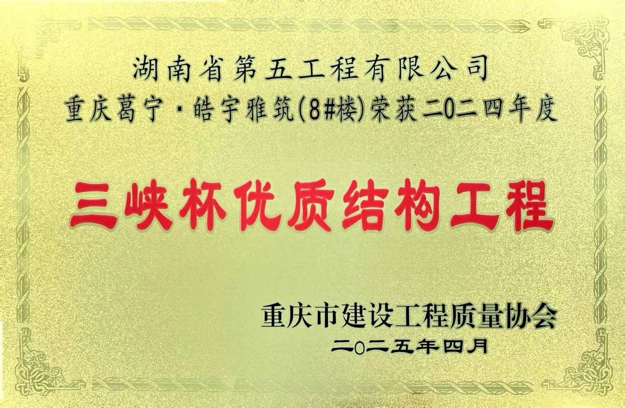 省外傳佳音,創(chuàng)優(yōu)新突破。近日,重慶市質量協(xié)會召開2024年度總結表彰會,由直營項目管理公司承建的重慶葛寧皓宇·雅筑項目8#樓榮獲2024年度重慶市“三峽杯”優(yōu)質結構工程獎。